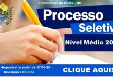 Abertas inscrições para seleção pública em Rio Crespo, RO, para Técnico em Nutrição na rede municipal, com salário de até…