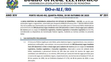 Concurso ALE RO terá provas objetivas, discursivas e práticas em seis cidades, com calendário definido e organização da FGV para…