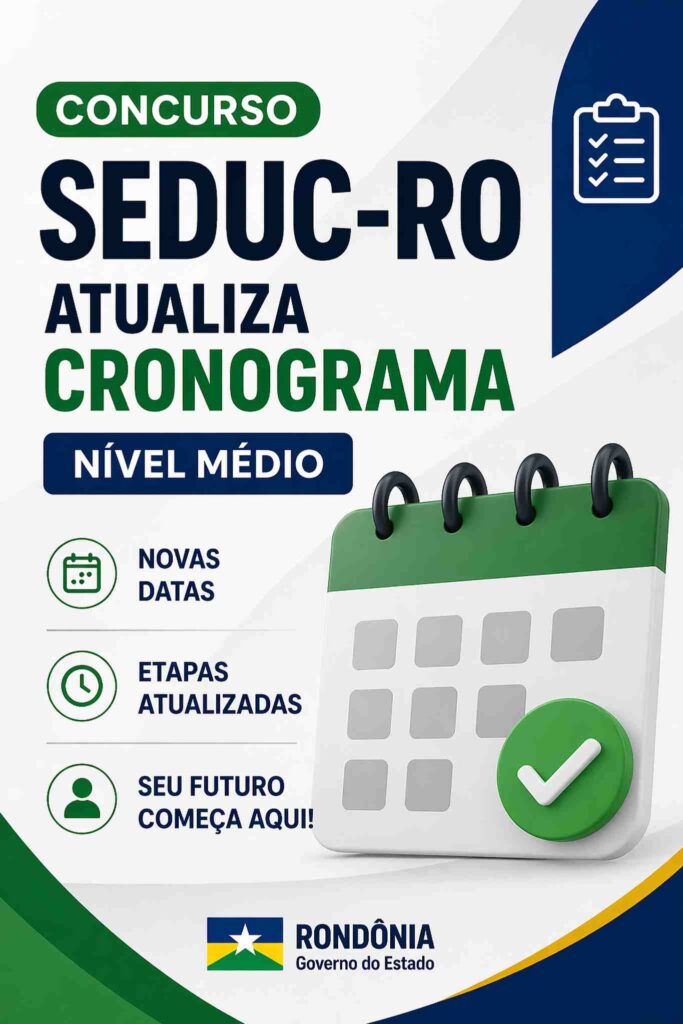 Porto Velho, RO – O Governo do Estado de Rondônia, através da Superintendência Estadual de Gestão de Pessoas (SEGEP), divulgou retificações no cronograma do Concurso Público Edital nº 2/2026/SEGEP-GCP para provimento de cargos de Técnico Educacional na Secretaria de Estado da Educação (SEDUC/RO).