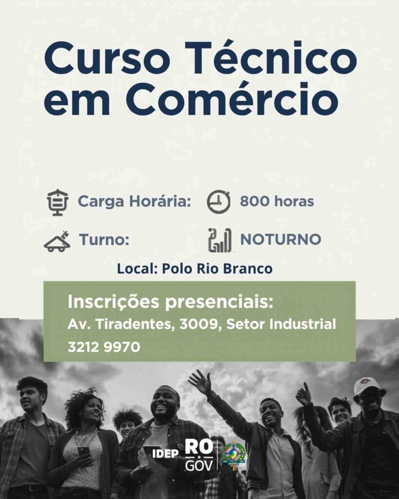 O Instituto de Desenvolvimento da Educação Profissional (IDEP RO) oferece o curso Técnico em Comércio, destinado a capacitar profissionais nas áreas de vendas e gestão de lojas. Este curso, que é gratuito e reconhecido pelo Ministério da Educação (MEC), visa atender a demanda crescente por profissionais qualificados no setor comercial em Rondônia.