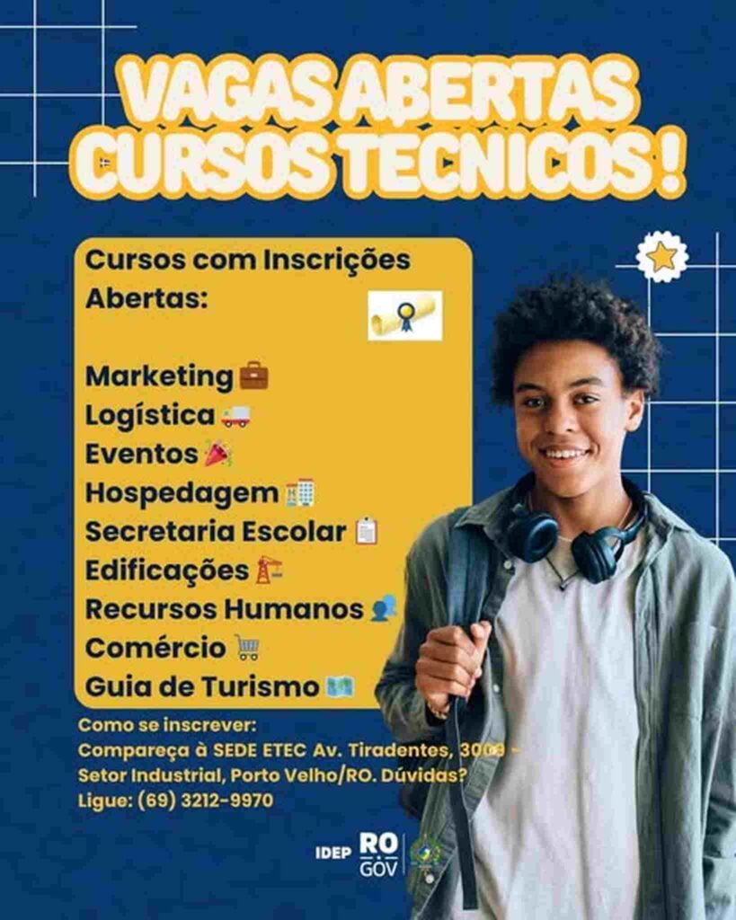 As formações são oferecidas no formato presencial, na sede da ETEC e no Polo Rio Branco, com inscrições e matrículas abertas até 8 de abril de 2026. A iniciativa integra a política estadual de formação profissional e capacitação técnica voltada ao mercado de trabalho de Rondônia.