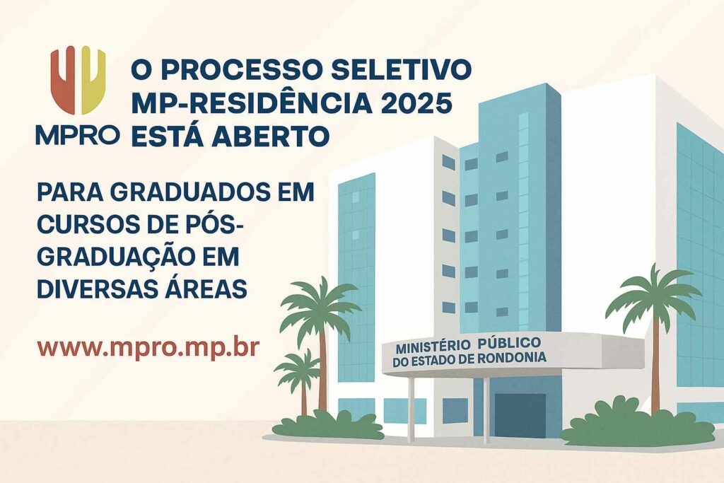 O Ministério Público do Estado de Rondônia (MPRO) abriu dois editais simultâneos para ingresso no Programa MP-Residência 2025, oferecendo oportunidades para graduados matriculados em cursos de pós-graduação em diversas áreas. Ambos os certames, publicados sob os Editais SEI nº 1/2025/SG e SEI nº 2/2025/SG, são independentes, com critérios, requisitos e cronogramas próprios.