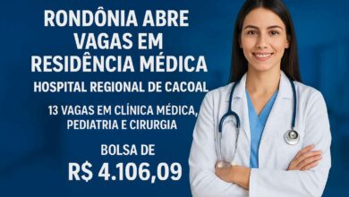 Residência médica em Rondônia oferece 13 vagas no Hospital Regional de Cacoal com bolsa de R$ 4.106,09 em clínica médica,…