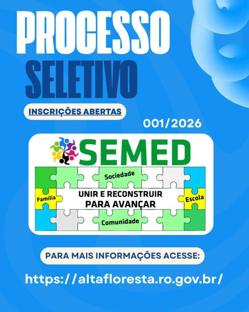 A Prefeitura de Alta Floresta D’Oeste, no estado de Rondônia, confirmou a abertura de um novo processo seletivo simplificado voltado à contratação temporária de profissionais para a Secretaria Municipal de Educação (SEMED). A seleção pública visa o preenchimento de vagas disponíveis imediatas e formação de cadastro reserva para atender à necessidade emergencial de manutenção do ensino nas zonas urbana e rural do município.