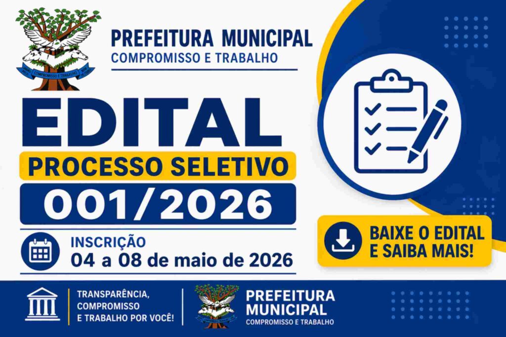 A Prefeitura de Seringueiras (RO) publicou o edital do Processo Seletivo Simplificado nº 001/2026 com oferta de 127 vagas temporárias para atuação nas secretarias municipais de Educação, Saúde e Assistência Social. As contratações serão por tempo determinado para atender necessidade excepcional de interesse público.