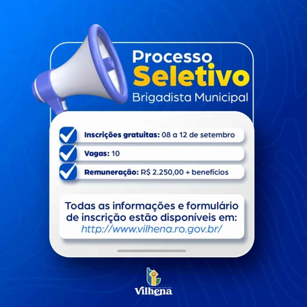 A Prefeitura de Vilhena, em Rondônia, publicou o edital do Processo Seletivo Simplificado nº 001/2025/SEMMA para contratação temporária de brigadistas municipais.