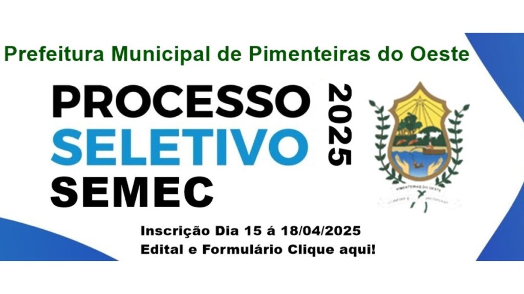 A Prefeitura de Pimenteiras do Oeste, em Rondônia, anunciou por meio do Edital nº 001/2025 a abertura de Processo Seletivo Simplificado com objetivo de contratar, por tempo determinado, profissionais para o cargo de Professor de Séries Iniciais, com lotação na Secretaria Municipal de Educação (SEMEC).