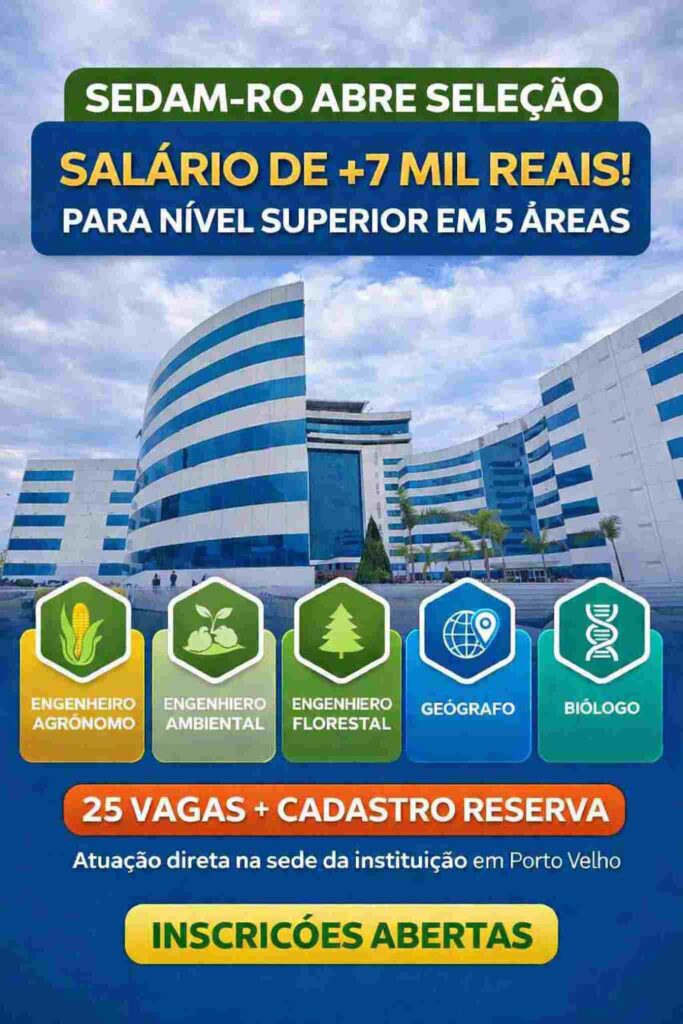 A oportunidade de emprego visa preencher vagas disponíveis para o cargo de Analista de Desenvolvimento Ambiental, com atuação direta na sede administrativa da instituição em Porto Velho. Ao todo, o edital publicado oferece 25 vagas imediatas, além da formação de cadastro de reserva para futuras convocações.