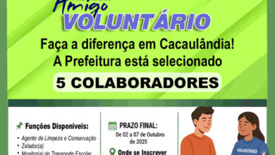 Prefeitura de Cacaulândia abre processo seletivo para o Programa Amigo Voluntário com vagas em diferentes secretarias municipais e funções de…
