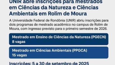 UNIR oferece vagas para mestrados em Ciências da Natureza e Ciências Ambientais no campus de Rolim de Moura com início…
